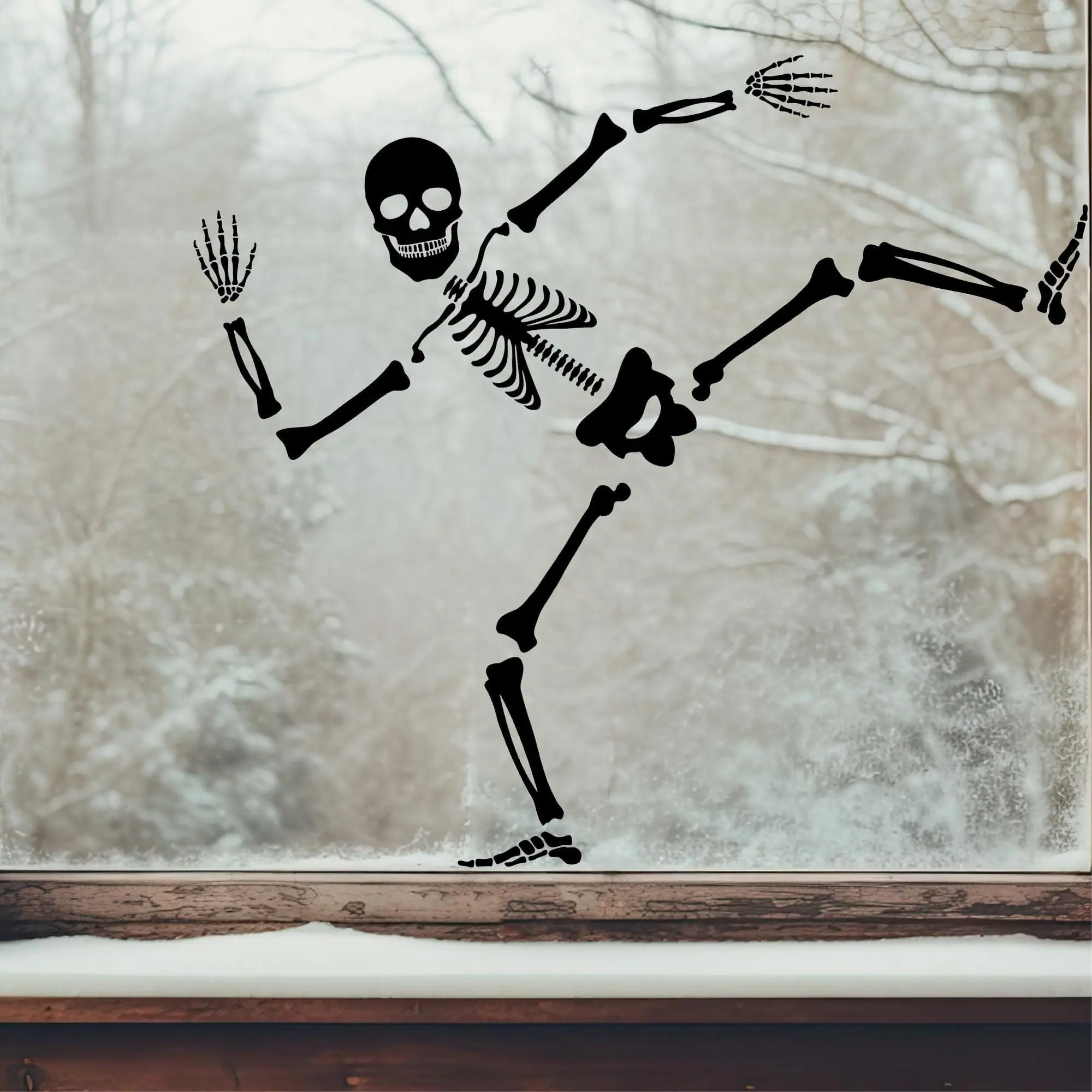 Fensterbild Halloween Skelett schwarze Silhouette Knochen Fensterdeko Kinderzimmer Wohnzimmer Fensterfolie Fensterdekoration