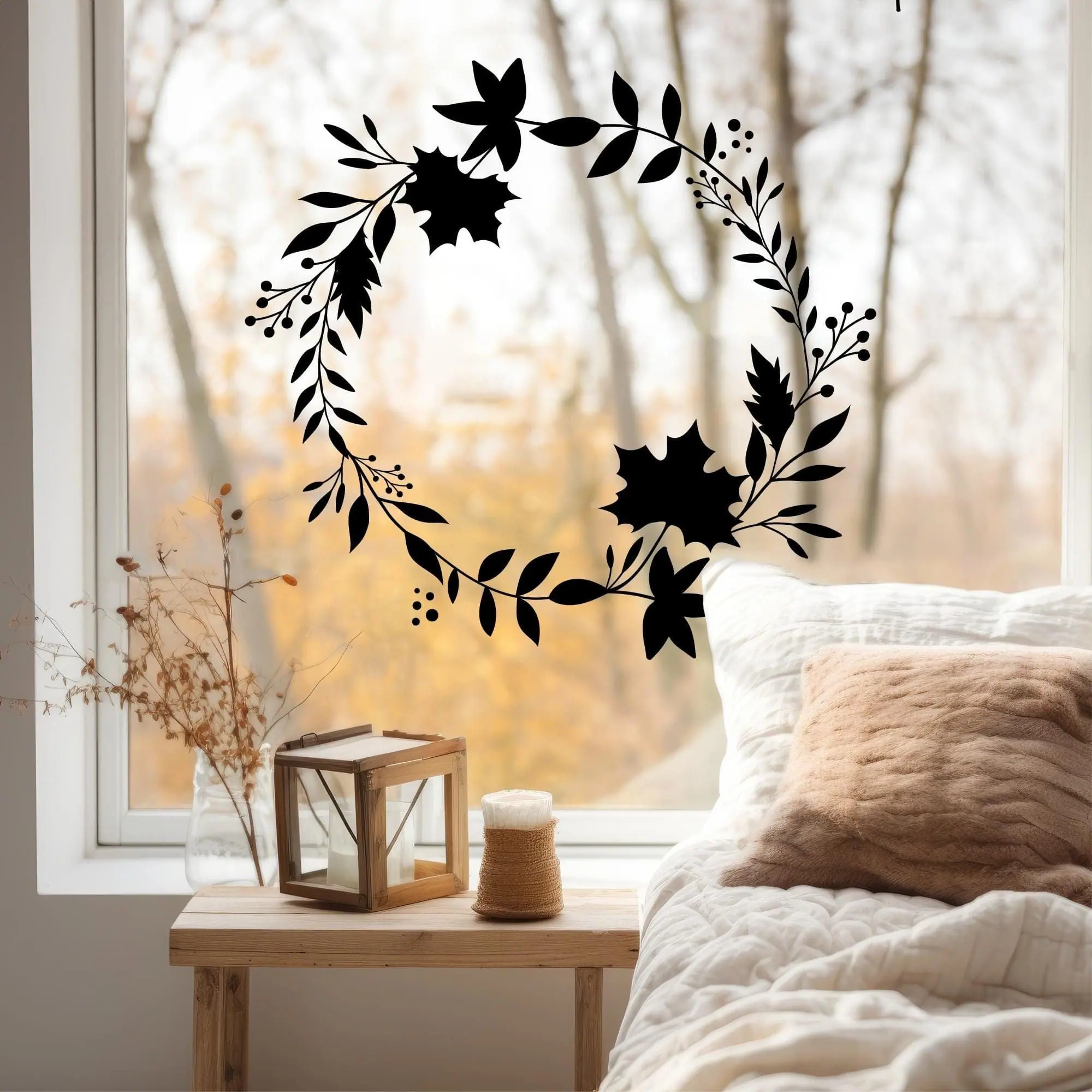 Fensteraufkleber Herbstblätterkranz – Dekor für eine gemütliche Herbststimmung